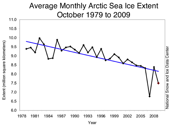 - Arctic sea ice extent has declined (Source: NSIDC)