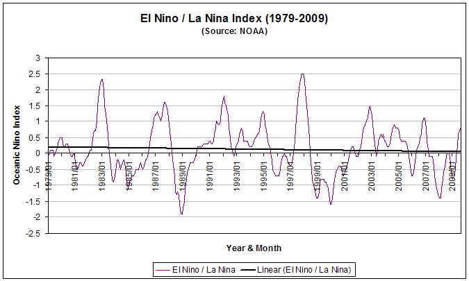 - The El Nino / La Nina Index has declined (Source: NOAA) which should also drive temperatures down.