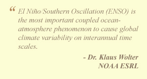 ENSO and PDO both refer to oceanic and atmospheric patterns in the Pacific Ocean, but they differ from one another. ENSO focuses on conditions near the equator. These conditions alternate between warmer (El Niño) and colder (La Niña) phases, with individual phases lasting from a few months to a year. Each phase can have a noticeable impact on global temperatures, with El Niño conditions driving temperatures higher and La Niña having the opposite effect. A particularly strong El Niño in 1998 is credited with pushing global temperatures to some of their highest levels on record.