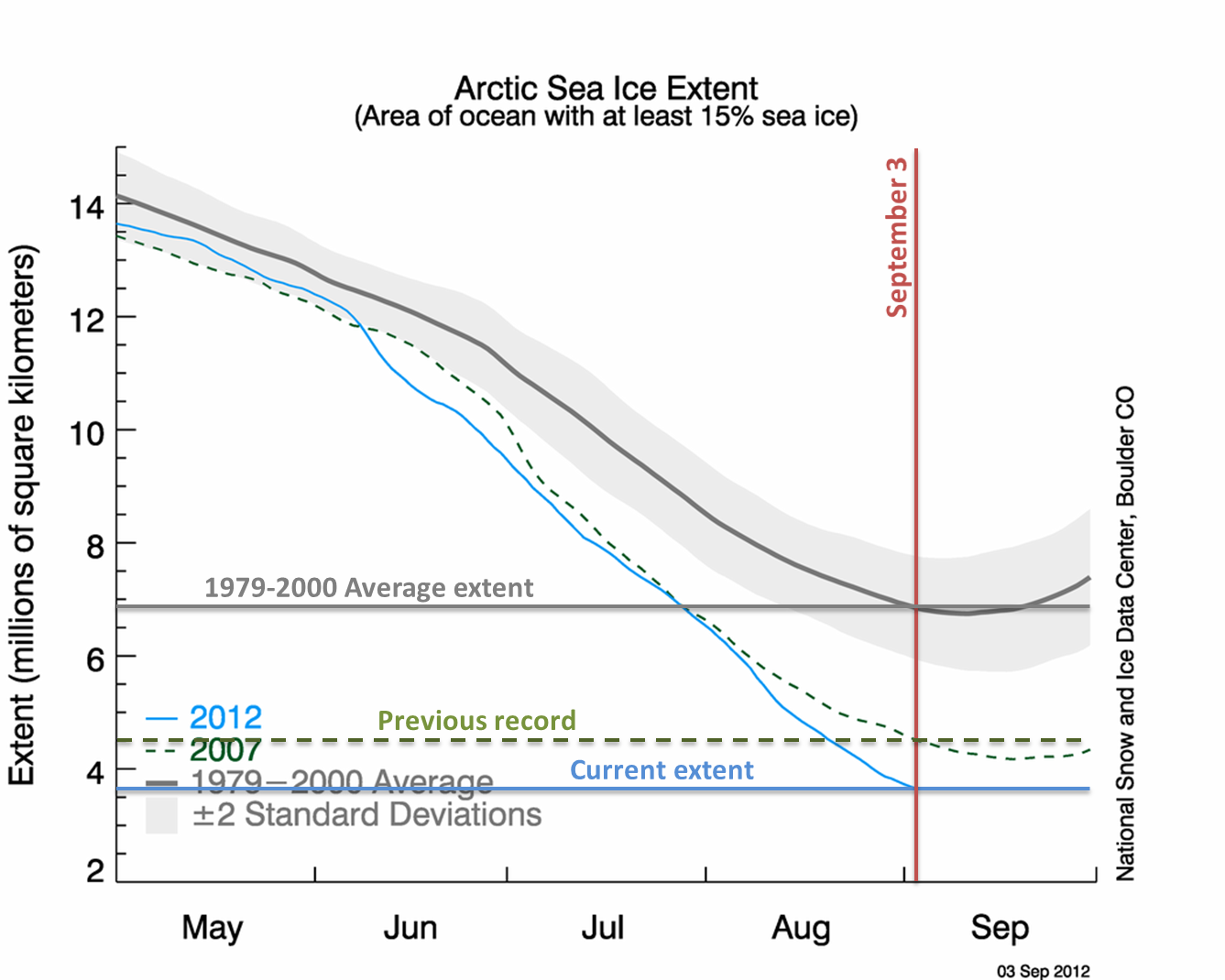 Previous record low for this date (Sep 3, 2007): 4.46 million sq km (1.72 million sq miles)