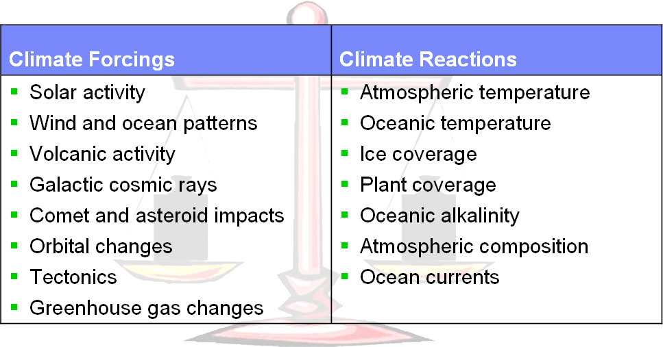 The global climate constantly seeks a balance between the influences on it and its associated reactions. These influences are called “forcings”.